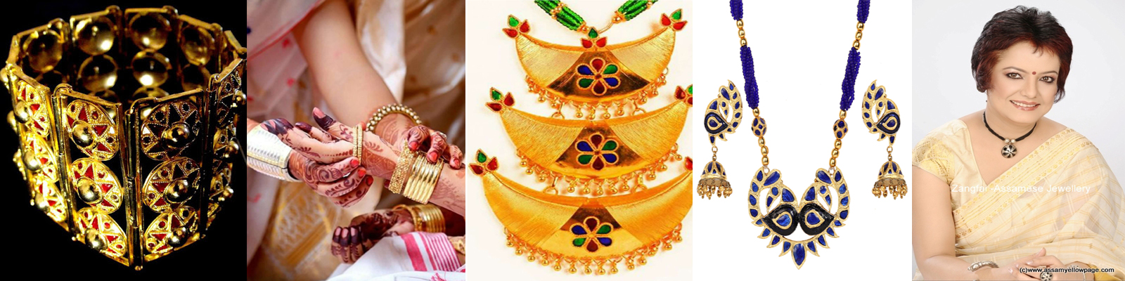 A large quantity of gold was used in making ornaments. F.C. Hanniker in his monograph on gold and silver wares of Assam writers: “ Assam Jewellery is by no means without merit. It incurs the stock reproach of the being unfinished, it is no doubt crude and precious stones used are not very precious or very well cut. But it is quaint and characteristic. The gold used of a high degree of purity. The Assamese goldsmiths’ customers would not be satisfied with 14 carat or even 18 carat gold and many of the bracelets, necklaces etc. are distinctly pleasing even to the critical eye and would attract notice in the midst of quite a good collection of the Indian wares”. According to F.C. Hanuikers, there were a considerable number of goldsmiths and dealers in the districts of Kamrup, Goalpara and Sibsagar. In the district of Kamrup, Barpeta was the well-known Centre of the trade. In the whole province, Jorhat was alone proud of enameling works, known as “Mina Kara” in Assamese.